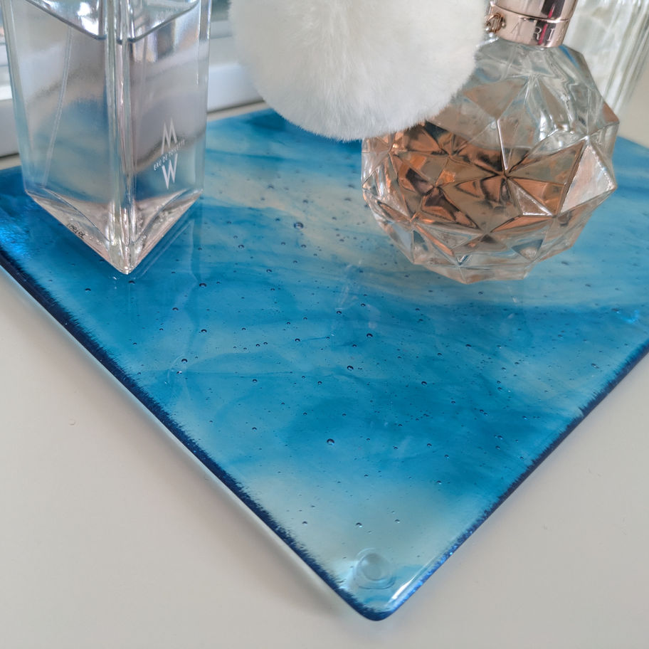 Bring the calming movement of the sea into your home with this handmade fused glass rectangle platter. Each piece is individually crafted in my Wiltshire studio, using a layering and kiln-firing technique that results in a smooth, durable, light-catching surface.